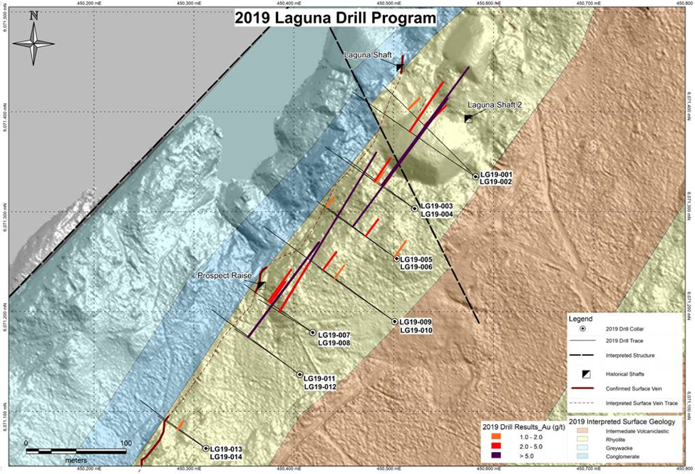 This year’s drill program will test the new vein, the Laguna quartz vein, the Bingo vein and Kiski quartz vein system, and could include the Zona vein at Lucky Jack.