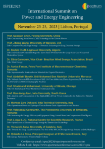 Spectrum Conferences takes the pleasure to invite all the academic scientists, researchers, research scholars, students, and experts of application fields to the International Summit on Power and Energy Engineering (ISPEE2023), to be held during November 23-25, 2023 in Lisbon, Portugal.