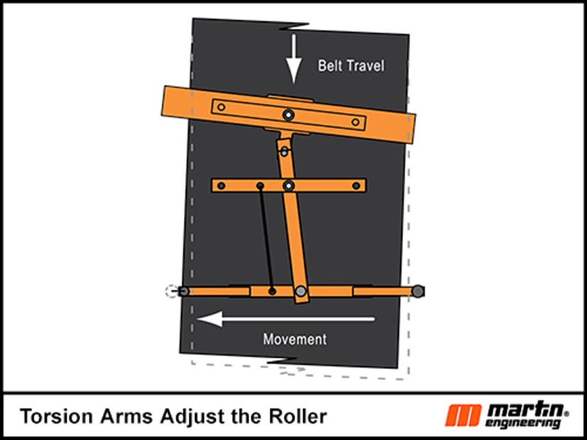 Multi-Pivot Belt Trackers like Martin Trackers use long arms to control a pivot roller. The guide rolls detect very slight misalignments and make immediate corrections. The longer arms require considerably less force to move the pivot roller, resulting in less counterforce and drag on the belt.