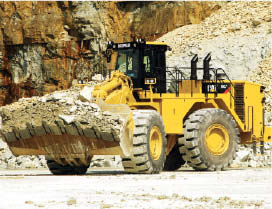 Caterpillar's 992K high-lift wheel loader is a machine capable of lifting loads up to 21 tons to a height of 24 ft 9 in.