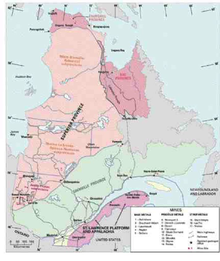 The Superior and Grenville tectonic provinces underlie most of Qubec and form a vast territory that hosts mineral resources including precious metals (Au, Ag), base metals (Cu, Zn, Ni), iron and othe...