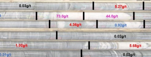 The Carey discovery has returned the following high grades from a new structural zone: