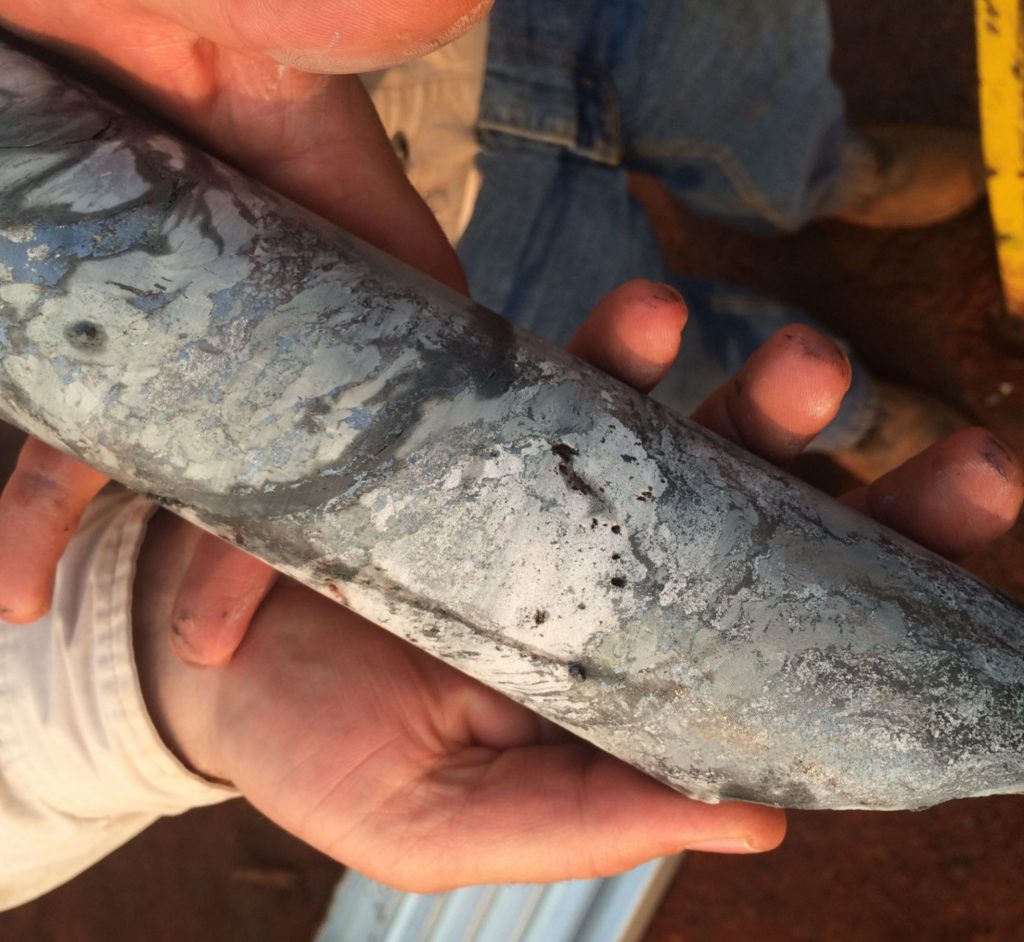 Massive chalcocite mineralization at a depth of 619 metres in hole DD1041.[/caption] The company has received assays from eight holes of the current Kakula drill program that indicate a massive, flat lying, shallow, chalcocite-rich core more than 3.0 km long and open at both ends. Highlights of the latest drill results include (all true widths):