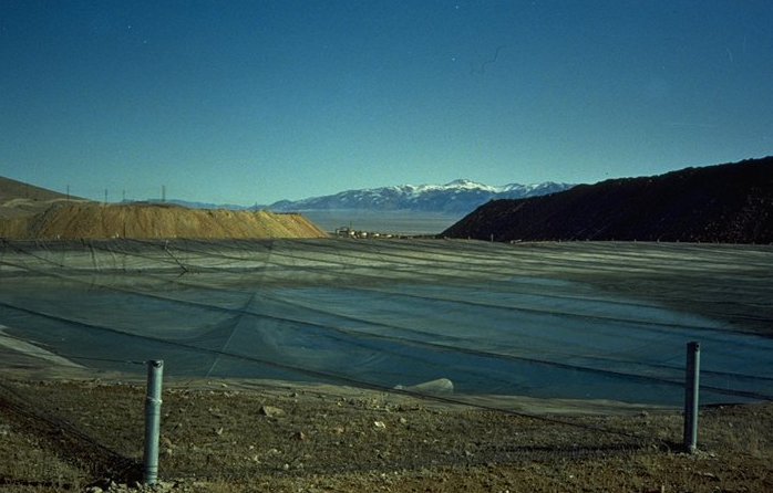 Gold heap leach pad in Nevada. Credit: Wikimedia Commons/Metallos~commonswiki[/caption]