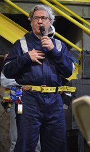 Barrick executive chairman John L. Thornton explains the new global employee share plan to workers at the Turquoise Ridge mine in Nevada.[/caption]