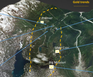 The Silver Coin deposit is located 5 km north of the Premier mill and 800 metres south of the Big Missouri deposit.