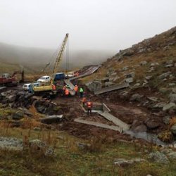 Construction of the water channel at Amulsar.[/caption]