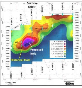 QUEBEC – An induced polarization (IP) survey completed over the Northeast IP target at