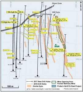 Probe Metals has decided to expand the current drilling program at its Val-d’Or Est gold project to 75,000 metres from 50,000 metres thanks to the “very positive” results to date. The property is located about 25 km northeast of Val d’Or in the Abitibi gold belt.