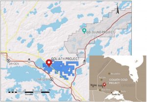 Map of the Goliath property near Dryden, Ont. (Image: Treasury Metals)[/caption]