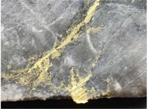 Visible gold is a hallmark of the Lynx zone and locally occurs in other zones at the high grade Windfall project. (Image: Osisko Mining)[/caption]