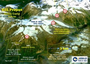 Garibaldi’s E&L project that includes the first massive magmatic sulphide system found in the Eskay mining camp. (Image: Garibaldi Resources)[/caption]