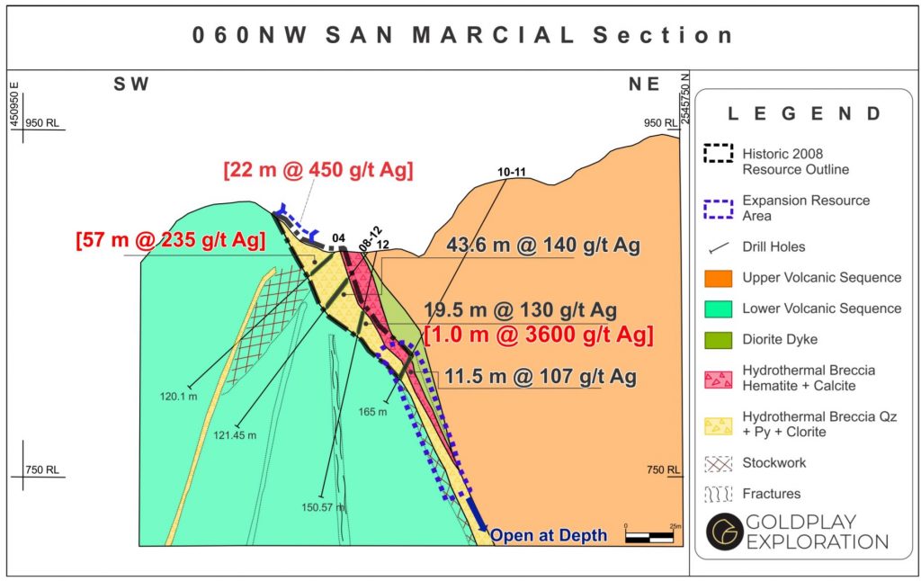 A cross-section of the San Marcial deposit in Sinaloa. (Image: Goldplay Exploration)[/caption]