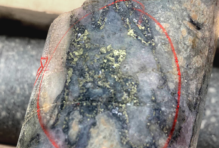 Visible gold drilled at the Ranch project in B.C. Credit: Thesis Gold