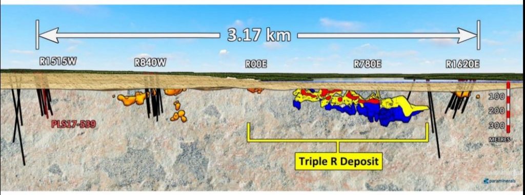 Cross-section of the Triple R deposit and new zones looking north. (Credit: Fission Uranium)